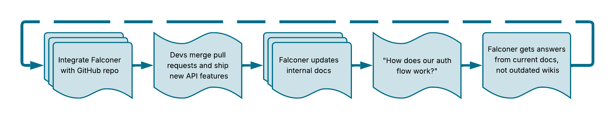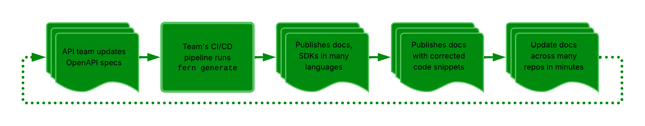 Example: a tech writer adding docs for a new payment method publishes directly to the portal, where it immediately becomes discoverable alongside authentication guides, error code references, and getting started tutorials — devs never need to leave the portal to get from "what is this API?" to a working integration