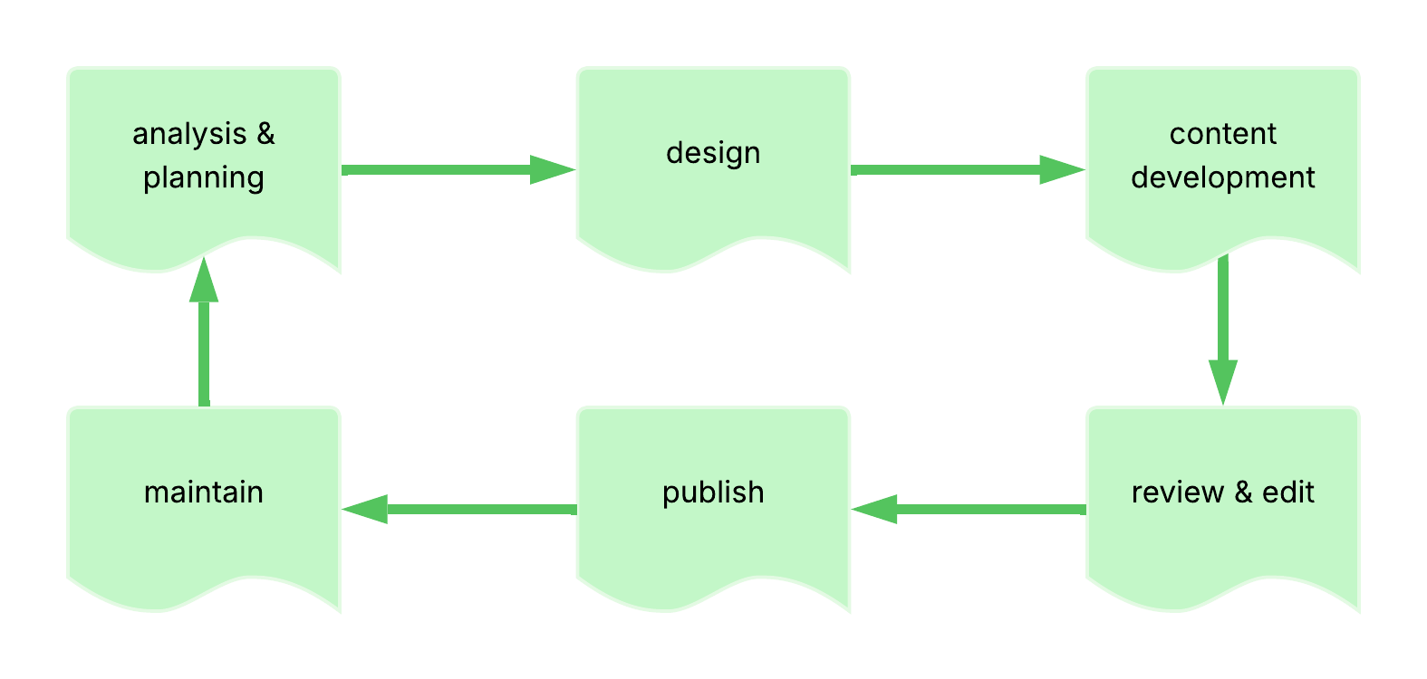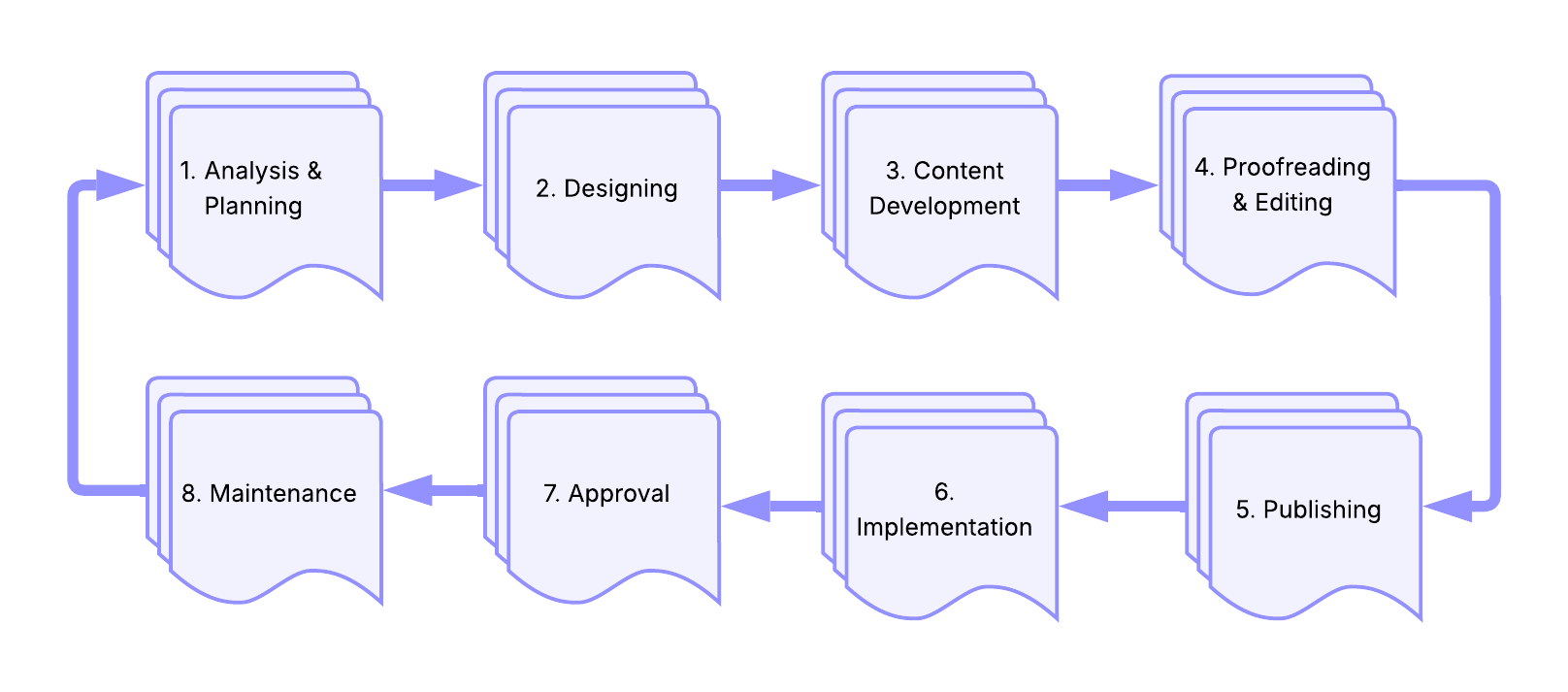 Definition: also known as DDLC; process of writing and delivering content in the form of documentation such as PDFs, Word documents, online articles, or website content